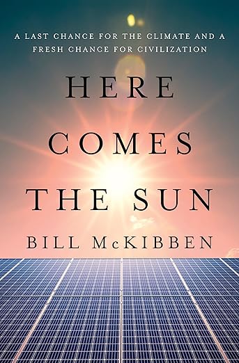 Our next book is Bill McKibben’s Here Comes the Sun: A Last Chance for the Climate and a Fresh Chance for Civilization.